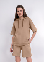 Толстовка женская. Новинка. Свитшот из пластичного футера актуального силуэта и объема. Сильно спущенная линия плеча, аккуратная небольшая горловина. Разрезы в боковых швах 11 см. Манжеты из основной ткани. Декор из разноцветных страз и серебристого металлика. Перевод Мои мечты .