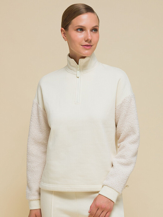 Стильный женский свитшот свободного силуэта со спущенным плечом. Толстовка без капюшона выполнена в комбинации двух материалов: гладкого футера и фактурного меха «барашек». Это актуальный модный тренд. Толстовка с воротником-стойкой. Он защитит от холода и ветра. Застёжка на короткую молнию — удобно и быстро застёгивать и расстёгивать. По низу удобная кулиска — можно регулировать объём и посадку. Свитшот однотонный, без принта. Изделие неприхотливо в уходе, его легко стирать, ткань быстро сохнет и не склонна к образованию катышков. В составе основной ткани (футкер с начесом) преобладает качественый хлопок — толстовка мягкая, отлично дышит. Рукава выполнены из мягкого и приятного на ощупь бербер-флиса (фактура «барашка»). Свитшот представлен в двух универсальных цветах: чёрном и молочном. Его легко сочетать с различными моделями брюк. Размерная линейка: XS (42); S (44); M (46); L (48). Толстовка идеальна как для женщин, так и для девушек и девочек-подростков. Подходит и высоким, и невысоким девушкам. Оверсайз-свитшот — прекрасный выбор для повседневной носки и активного отдыха. Он тёплый, лёгкий и мягкий. Для круглогодичного применения: прохладным летом, осенью, зимой, весной и демисезон. Это модный и практичный подарок для сестры, подруги или дочки на любой праздник.