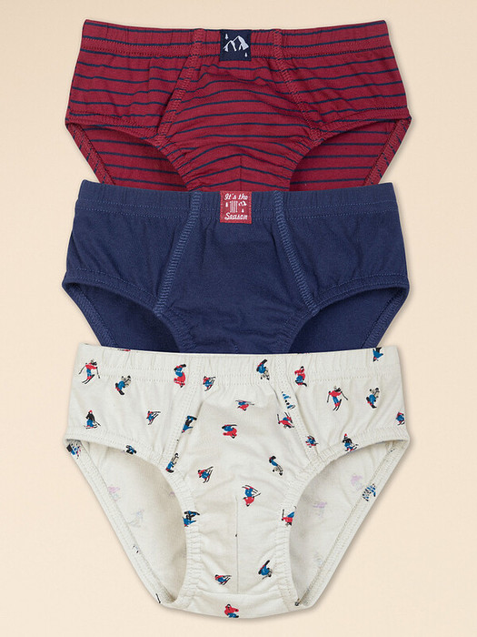 Трусы слипы для мальчика из мягкого хлопка в наборе из 3 штук представлены в тематической, зимней расцветке - серый, синий и бордовый.