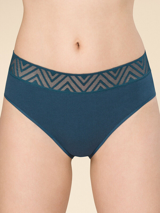 Женские трусы-слипы с высокой посадкой. Приятная на ощупь ткань с высоким содержанием хлопка и небольшим содержанием эластана – трусы сохраняют форму и не выцветают даже после частых стирок.  Мягкая широкая обработка по линии талии кружевным эластиком – не вызывает дискомфорта и не передавливает тело. Нежное геометричное кружево актуально в этом сезоне. Модель подчеркивает изящество фигуры и создаёт комфорт. Идеально подходят для повседневной носки, для сна и для романтических встреч.