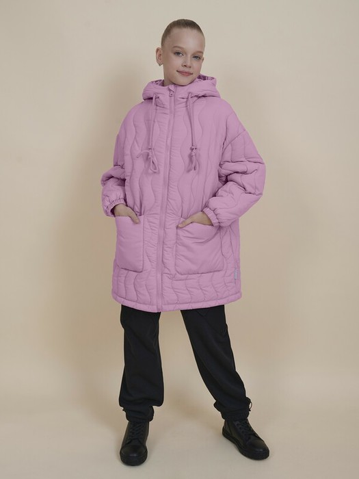 Куртка для девочек  – демисезонная модель прямого силуэта, увеличенного объема с утеплителем из синтепона (200 гр) и хлопковым подкладом. Куртка детская с температурным режимом +5 °C на весну и осень. Водоотталкивающая пропитка или  DWR (Durable Water Repellent) – «устойчивое водоотталкивающее покрытие» - защищает от промокания под дождем: материал не утяжеляется под воздействием влаги, позволяя свободно пропускать воздух. Капюшон двухшовный, что обеспечивает анатомически правильную форму и комфортную посадку по голове. Капюшон не отстегивается, предусмотрена регулировка объема эластичными шнурами с пластиковыми стопперами. Куртка для девочки представлена в размере возраста для садика и школы. Куртка длиной до середины бедра с практичным и ловким кроем, понятной формой и силуэтом. Застегивается на тракторную молнию, с внутренней стороны которой имеется  ветрозащитная планка для дополнительного тепла. Слегка спущенное плечо и углубленная пройма, мягкая линия плеча для удобства в носке. Рукав объемный вверху, понизу собран на широкую резинку. По переду два больших накладных кармана - актуальный тренд сезона. Изюминка модели - стильная фигурная волнообразная стежка. Плетение шнурков созвучно стежке волнами, софт-тач стопперы и брендированная фурнитура делают эту куртку стильной и современной. По низу изделия предусмотрена регулировка объёма на эластичный шнур с пластиковыми фиксаторами. На спинке и в боковых швах расположены светоотражающие элементы — безопасность в тёмное время суток. За изделием легко ухаживать. Изделие представлено в цвете на выбор: розовый, бежевый и светло-зеленый. Единый дизайн name label’s - ребенок не потеряется и легко отыщет свою одежду.  Размерная линейка: 2 (92); 3 (98); 4 (104); 5 (110); 6 (116); 7 (122); 8 (128); 9 (134); 10 (140); 11 (146). Предусмотрена стирка при температуре +30 градусов. Выбирайте нужный размер по таблице размеров на фото. Цвет товара на экране вашего устройства может отличаться от цвета изделия вживую.