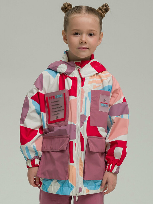 Удлиненная ветровка для девочки очень большого объема, с сильно спущенным плечом с температурным режимом не ниже +5°С. Наличие в составе ткани мембраны делает куртку максимально комфортной при носке. Водоотталкивающая пропитка (DWR) наносится на внешнюю поверхность ткани и задерживает грязь и влагу снаружи. Дополнительный слой на внутренней стороне ткани не позволяет ребенку промокнуть. Цельнокроеный 2-шовный капюшон с улучшенной посадкой по форме головы. Необычное расположение стоппера для регулировки объема капюшона - на средней части капюшона. Центральная застежка на тракторную молнию с двумя пуллерами. Не заедает и удобно расстегивать! Тканевый стоппер защищает подбородок от зажима молнией. Широкий рукав на резинке.  На переде четыре кармана: вместительные накладные карманы с клапанами и застежкой на магните - тренд сезона, на верхних карманах настрочены декоративные резиновые нашивки. Перевод "Твои наушники здесь" и "это нормально: -ошибаться, -когда неудачный день, -быть неидеальной, -делать лучшее для