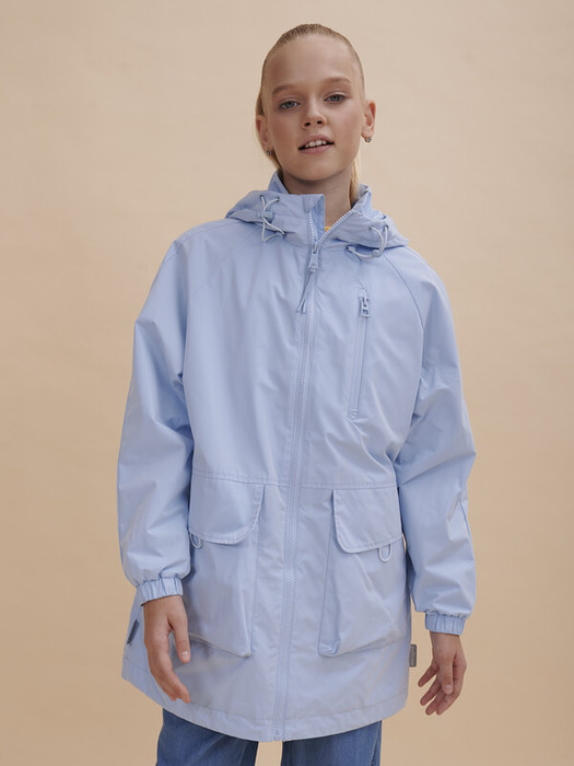 Ветровка для девочки с температурным режимом не ниже +10°С прямого, свободного силуэта.  Рукав реглан имеет мягкую форму. Такой фасон подходит и замечательно смотрится на фигурах любого типа. Ткань верха бархатистая, очень приятная на ощупь, с peach-эффектом. Мембранная ткань хорошо защищает нижние слои одежды от намокания. Структура мембранной ткани позволяет коже дышать - ребенок легко двигается и не переохлаждается. Изделие сохраняет первоначальный внешний вид даже при активной носке. Водоотталкивающая пропитка или  DWR (Durable Water Repellent) – «устойчивое водоотталкивающее покрытие» - защищает от промокания под дождем: материал не утяжеляется под воздействием влаги, позволяя свободно пропускать воздух. Подклад из хлопка по стану и в капюшоне, в рукавах из полиэстера для легкого надевания.