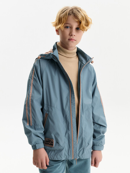 Ветровка для мальчика с рукавом реглан обеспечивает свободу движений и легко сидит на разных типах телосложения. Длина до подъягодичной складки выглядит современно и не мешает при динамике. Накладные карманы на молнии спереди дают безопасное хранение мелочей — ключей, небольших аксессуаров, карточек. Спортивный акцент усиливают лампасы на рукаве, подчёркивающие характер модели.