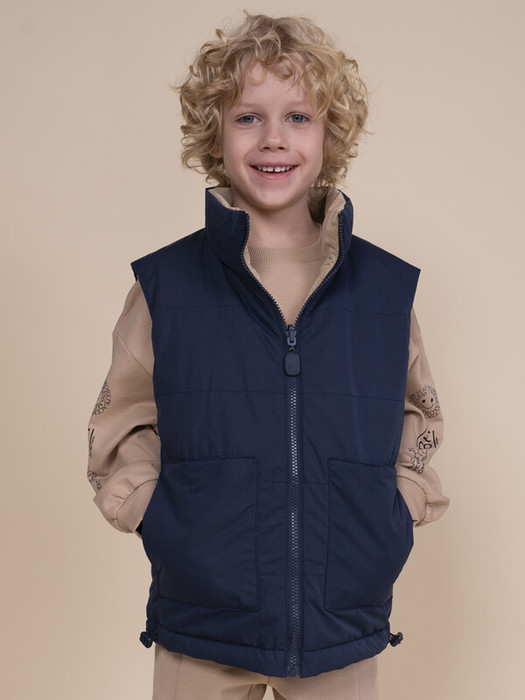 Жилет для мальчика – двусторонняя стеганая модель на синтепоне с мембраной и отталкивающим влагу покрытием. Незаменимый демисезонный вариант на весну и осень с температурным режимом +5 °C. Верхняя одежда для детей отлично защищает от ветра и осадков, позволяя активно двигаться, заниматься спортом и весело играть как в городе, так и на природе.
