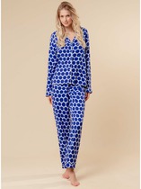 Молодежная пижама с шортиками в горошек и майкой из отделочной ткани в цвет горошка. На полочке интересный принт в виде девушки с огромным букетом