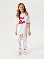 Детская пижама с шортами выполнена из 100% хлопчатобумажного трикотажного полотна. Футболка свободного покроя с перепадом длин украшена бантиком в цвет шорт. Горловина обработана окантовкой, низ изделия и рукав - узким спиральным швом. Шорты на поясе с резинкой дополняют боковые карманы, что придает пижаме дополнительные удобства при носке. В этой пижаме есть все, что любят наши маленькие модницы.