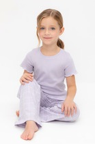 Пижама детская из мягкого и теплого трикотажа (футер с начесом). Подходит для сна и просто для отдыха дома. Кофточка с длинным рукавом имеет круглый вырез, горловина обработана эластичной тесьмой (рибана). Вшитая планка украшена белыми кнопками. Низ рукава и низ брюк имеет манжет, созданный из основного полотна. В этой пижаме комфортно и уютно