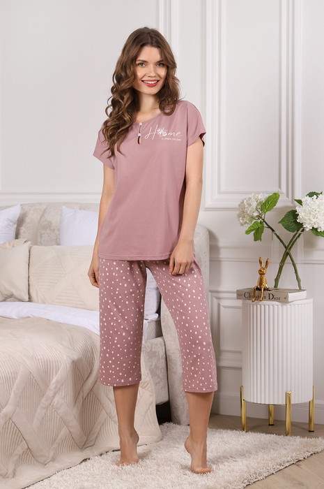 Пижама молодежная из трикотажного полотна «кулирка» в комбинации двух видов в единой цветовой гамме: гладкокрашенного и с набивным