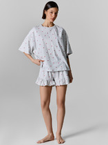 Пижама женская - комбинация синего с белым цветом. Шорты с карманами, по низу манжеты. Спереди на груди вырез в виде капельки.