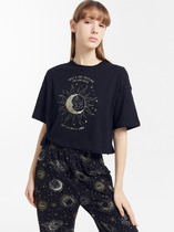 Пижама молодежная из трикотажного полотна «микрофлис» в комбинации двух видов: с набивным рисунком и гладкокрашеного в единой цветовой гамме, состоящая из футболки и брюк. Футболка - из гладкокрашенного полотна, классического покроя, с длинными втачными рукавами, горловиной овальной формы, окантованной основным материалом.Брюки – из полотна с набивным рисунком, свободного покроя, с эластичной тесьмой по талии и притачными манжетами по нижним срезам.