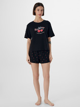 "Костюм-пижама для беременных и кормящих женщин. Футболка с V-образной горловиной, короткими рукавами, со сборкой на резинку спереди, под грудью. Шорты с уменьшенной высотой спереди для их комфортного расположения под животом, расширенные книзу.
