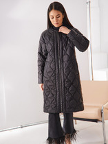 Стильный плащ от бренда D'imma fashion studio коллекции весна/лето 2016, выполненный из гладкого нейлона с мелким рисунком, на шелковистой подкладке. Плащ прямого кроя, с отложным воротником и асимметричным подолом. Спереди плащ застегивается на пуговицы.