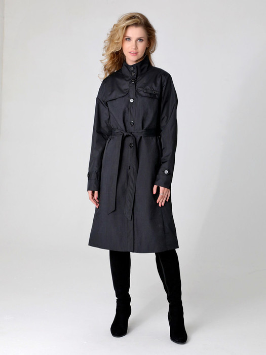 Легкий весенний плащ прямого силуэта с втачными рукавами подходит для девушек и женщин разного возраста. Застежка - на петли и пуговицы. Воротник - стойка. Карманы расположены в рельефных швах. Есть внутренний кармашек. Подчеркнуть линию талии можно с помощью съемного пояса. Плащевая ткань имеет водоотталкивающую пропитку, которая выдержит небольшой дождь и легкий ветер. Подкладка в этом весеннем плаще выполнена из ткани в мелкую полоску. Аккуратная стойка, отлетные кокетки и гофрированные вставки определяют элегантный стиль плаща. Выбирайте классический черный или светло-бежевый цвет и встречайте новый весенний сезон модной и элегантной!