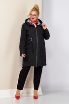 Плащ актуального прямого силуэта, выполнен из плотной экокожи с тиснением. Воротник пиджачного типа с отложными лацканами. Двубортная застёжка на петли и пуговицы. По плечевому шву обработаны погоны. Спереди отлетная кокетка и наклонные карманы с листочкой. Рукава кроя реглан, с патами по низу, с фиксацией на пуговицы. Спинка со средним швом. Для удобства движения сзади обработана шлица. Тренч на подкладке. В комплекте пояс из основной ткани с пряжкой.
