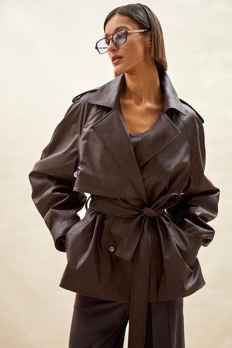 Тренч укороченный из экокожи: