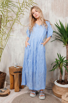 Художественный замысел дизайнеров, воплощён в жизнь благодаря кропотливому труду наших швей. И вот мы видим великолепие соцветий на представленном платье. И только самый внимательный сможет определить сорт этих цветов. А свободный крой модели лишь немного «оттеняет» декор. Ощутите на себе великолепие нашей льняной одежды!