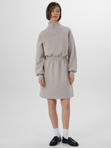 Платье из трикотажного полотна с блеском с фигурной кокеткой из сетки с пайетками.В среднем шве спинки застежка молния.