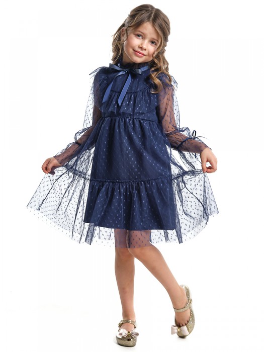 Совместные покупки Каменск-Уральский Детская одежда Платья — Mini Maxi Платье (98-122см) UD 7360-4(2) синий-горошек