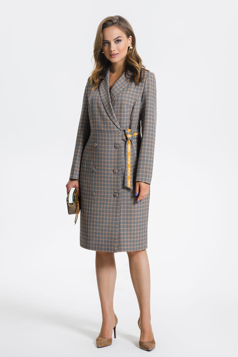 Стильное платье, полуприлегающего силуэта, выполнено из высококачественной плательной ткани с добавлением вискозы с модным принтом клетка. Платье с застежкой на шесть пуговиц, обтянутых основной тканью, а также рамку с завязкой на пояс, декорированной пришивной тесьмой надписью FASHION. Рукав втачной, полной длины. Модель практичная и современная, прекрасно стройнит, отлично подойдет для работы в офисе и ежедневной носки.