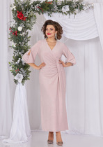 Элегантное нарядное платье, выполнено из роскошной струящейся плательной ткани с добавлением вискозы. Платье с имитацией запаха по переду, отрезное по линии талии. В боковом шве платья потайная молния застежка. Рукав цельнокроеный, спущенный. Спинка платья отрезная по талии, с резинкой. В комплекте идет съемный пояс, декорированный пришивным украшением (Украшение может отличатся от фотографии!), с резинкой и застежкой на пуговицы в цвет платья. Модель удобная и практичная, вы будете в нем выглядеть неотразимо и нарядно.