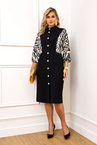 Платье А- образного силуэта, на подкладке. Перед с нагрудными выточками. Спинка со средним швом с разрезом и застёжкой на навесную петлю и пуговицу. Рукава втачные, одношовные, короткие.