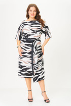 Платье женское свободного силуэта с имитацией накидки. Платье отрезное по линии талии. Верхний лиф на запах по переду, и нагрудной вытачкой.Вырез горловины круглый,по спинке застежка на потайную молнию. Юбка на сборке по талии.