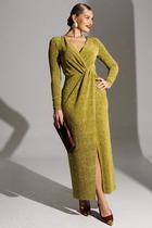 27.03 Vilatte Платье свободное с V-вырезом из 100% хлопка с поясом и разрезом D