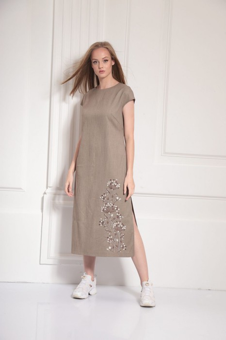 Натуральное платье с дизайнерской вышивкой "Соцветия". По боковым швам разрезы. Молния по спинке. Изделие без подкладки.