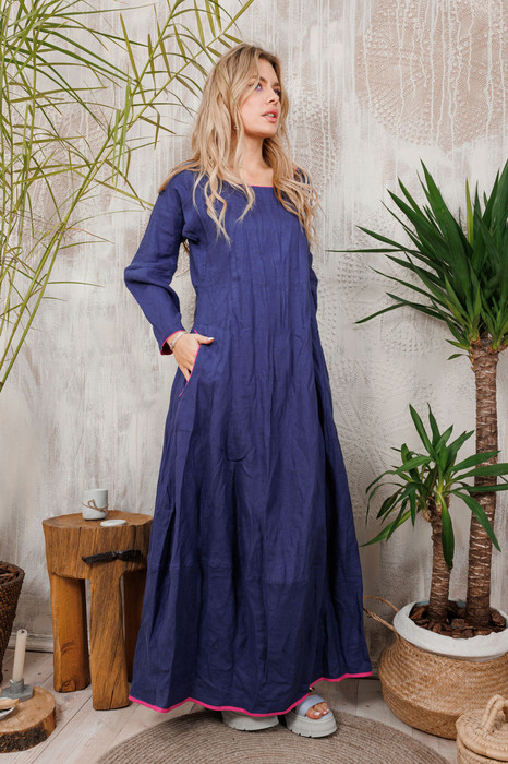 Невероятно красивое льняное платье "АМУЛЕТ" с деликатными яркими акцентами.  Форма юбки и рукавов стройнящими тюльпанчиками , а большие удобные карманы соответствуют последним трендовым изыскам современным веяниям  моды. Все изделия коллекции "АМУЛЕТ" имеют натуральную ткань, сложную обработку всех внутренних швов и  энергосберегающий крой. В подарок идет шопер с логотипом бренда.