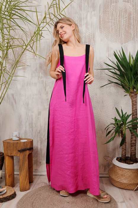 Летнее шикарное льняное платье "АМУЛЕТ" на контрастного цвета свисающий брителях. Платье на  льняной подкладке.  Все изделия коллекции "АМУЛЕТ" имеют натуральную ткань, сложную обработку всех внутренних швов и  энергосберегающий крой. В подарок идет шопер с логотипом бренда.