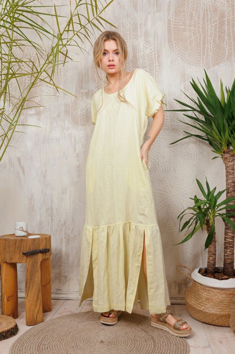 Летнее льняное платье "АМУЛЕТ" с коротким рукавчиком на кулиске и разрезами по переду юбки. В швах удобные карманы. Наши платья дают невероятное чувство комфорта, защищенности и красоты. Все изделия коллекции "АМУЛЕТ" имеют натуральную ткань, сложную обработку всех внутренних швов и энергосберегающий крой. В подарок идет шопер с логотипом бренда.