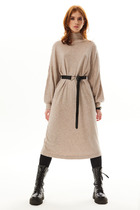 Трикотажное платье средней длины, с красивами рукавами на сборке по низу. Горловина-лодочка с тонкой элегантной бейкой.  Особенно красивый трикотаж - немного меланжевый и имеет еле-заметную  тончайшую люриксовую ниточку, При чем, блеск настолько мягко проигрывается, что очень мало заметен, но в то же сремя придает богатства и эффектого вида изделию. По этому платье прекрасно подойдет для любого случая в жизни.