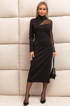 Платье женское полуприлегающего силуэта слегка зауженное к низу. Платье представлено из двух видов ткани из джинса на хлопковой основе и благородного замша. Застежка центральная на петли и пуговицы, воротник пиджачного типа. Платье отрезное по линии талии. На лифе полочки настрочены фигурные накладные карманы, на лифе и юбке обработаны талевые выточки, по юбке обработаны боковые накладные карманы. По спинке лифа обработана кокетка, также обработаны талевые выточки для более идеальной посадки. По линии талии по бокам паты, застёгивающиеся на петли и пуговицы. Рукава длинные втачные по низу притачная манжета на петлю и пуговицу.