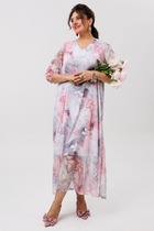 Элегантное женское платье необычного кроя станет изюминкой вашего гардероба. Платье прилегающего силуэта, отрезное по линии талии, по передеу застежка на петли и пуговицы, в верхней части платья по полочке прилегание создается за счет талиевых выточек, по спинке - за счет резинки по линии талии. Юбка-полусолнце с односторонними складками, по бокам карманы. Плечо спущенное, рукав укороченный, на высокой манжете на одну пуговицу. Горловина по полочке выполненна в виде цельнокроеной стойки, переходящей в отрезную по спинке. В качестве декора по краю борта идет жабо, переходящее в цветок. В комплекте съемный пояс в тон платья и брошь ВНИМАНИЕ! брошь может отличаться от фото. Длина по спинке:-111см. Длина рукава с манжетой-51см.