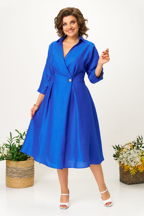 Элегантное женское палтье из натуральной ткани (премиальный лен) необычного кроя станет изюминкой вашего гардероба. Платье полуприлегающего силуэта, отрезное по линии талии со спущенным плечом. Рукав 3/4 длиный на отрезной манжете. По полочке идут защипы-складки в верхней и нижней частях, запах - на петли и пуговицы по подрезу. По нижней части платья запах идет в виде складки. По спинке кокетка со складкой, по подрезу вставлена резинка. Юбка-полусолнце с односторонними складками по полочке, по бокам карманы. По горловине воротник на отрезной стойке. Длина по спинке: 117см. Длина рукава с манжето 29см.