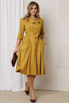 Бренд белорусской женской одежды больших размеров Anastasia представляет красивое, дизайнерское, платьев романтичном стиле для женщин плюс сайз. Платье полуприлегающего силуэта с рельефами, выходящими из плечевого шва, и переходящими в юбку-гаде. Застежка на петли и пуговицы. Воротник стояче-отложной опаш. По полочке идут карманы с клапанами. Рукав 3/4 длины с отложной манжетой и складками по плечу. В качестве декора идет разный дизайн пуговиц и пришивная брошь. Подчеркнуть талию можно с помощью пояса, который идет в комплекте. В этом платье вы будете центром внимания в любой компании. Благодаря женственному силуэту вы будете всегда ощущать себя красивой и модной. .Все модели от Anastasia – это уникальные изделия, которые выполняются исключительно малыми партиями. Добавьте красоты и изящества в свой гардероб с нашей новой коллекцией! ВНИМАНИЕ: брошь может отличаться от фото. Длина платья: (48-52)- 115 см, (54-56)-116см, (58-62)-118см. Длина рукава: (48-52)-42 см, (54-56)-43см, (58-62)-45см