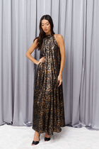 Платье прямого силуэта, длиной за колено, выполнено из вельвета в мелкий рубчик. Полочка платья с отрезной планкой по центру и застежкой на петли и пуговицы. Лиф платья отрезной , со складкой по низу, к срезу которой притачана юбка со сборкой. Полочка лифа с нагрудными вытачками и накладными карманами. Горловина круглой формы обработана воротником-стойкой. Пройма углубленной формы с рукавом рубашечного типа, рукав длинный, одношовный. В боковых швах юбки обработаны карманы.