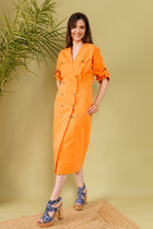 Элегантный округлый вырез горловины с отделкой.Втачные рукава из отделочной ткани с широкими манжетами.