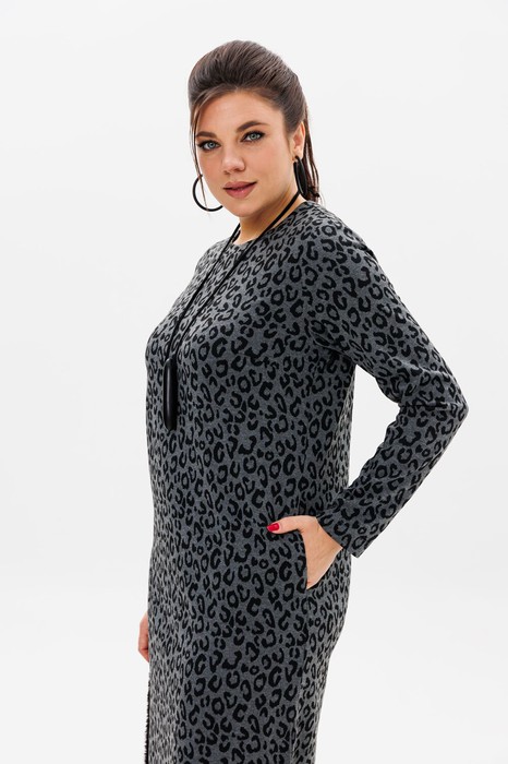 Особенность модели — стильная шлица на кнопках, расположенная сбоку, которая не только добавляет оригинальности, но и позволяет варьировать образ: расстегнув несколько кнопок, можно создать лёгкий, игривый акцент. В боковых швах предусмотрены карманы, что делает платье ещё более практичным и удобным.