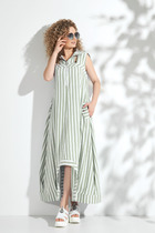 Это платье — воплощение изысканности и лёгкости, созданное для самых торжественных моментов. Свободный силуэт-трапеция, струящийся мягкими волнами, придаёт образу благородную воздушность, будто сотканную из солнечного света и летнего ветерка. V-образный вырез горловины, утончённый и элегантный, подчёркивает женственность, добавляя ноту соблазнительной тайны.