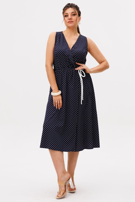 Длина ниже колена деликатно вытягивает силуэт, а конструкция на запах красиво адаптируется к любой фигуре, подчёркивая достоинства и создавая ощущение естественного комфорта. Нежная вискозная ткань мягко струится при движении, даря лёгкость и приятные тактильные ощущения, а актуальный горошковый принт в кремовом оттенке добавляет образу свежести и романтичного настроения. Пояс на кулиске позволяет регулировать посадку, создавая идеальный силуэт и ощущение свободы.
