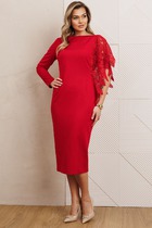Плотный трикотаж в сочетании с приталенным силуэтом мягко подчеркивает достоинства фигуры. Круглый вырез элегантно обрамляет линию шеи и ключиц, а слегка расклешенная юбка создает лаконичный и женственный образ.