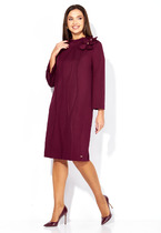 Платье прямого силуэта, по переду центральный шов, рельефы, переходящие в бочок. В рельефах рабочие карманы. Вырез горловины округлый. Пройма с притачной фигурной деталью. Спинка со средним швом и талевыми вытачками.