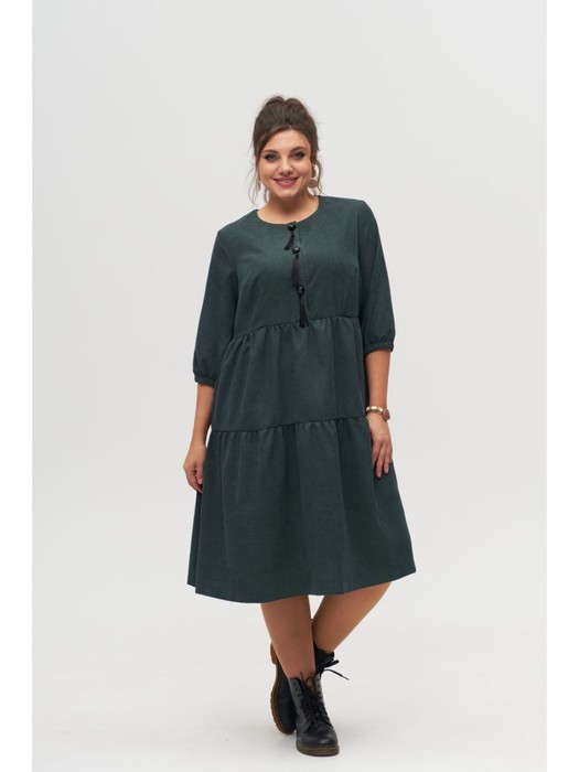 Функциональная центральная застежка по лифу на пуговицы, декорирована отделкой в виде кисточек.