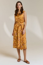 Платье полуприлегающего силуэта, расклешенное книзу. Воротник отложной, на притачной стойке. Платье отрезное по линии талии, на широкой резинке. Платье с центральной застежкой на петли и пуговицы на притачных планках. Полочка с нагрудными вытачками и накладными карманами со складкой и клапаном. В боковых швах юбки функциональные карманы. Рукав втачной короткий, с открытым плечом, понизу - притачная манжета и декоративная пата на пуговице.