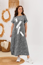 Миниатюрное платье полуприлегающего силуэта выполнено из плательной ткани с минималистическим принтом. Характеристики: полуприлегающий силуэт, овальная горловина, рукав втачной, застежка потайная тесьма молния в среднем шве заднего полотна изделия, спинка отрезная. Длина по спинке 86 см длина рукава 67 см.