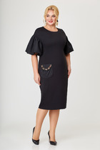 Платье в длине мини, рукав втачной, по низу собран на резинку, длина 3/4. застежка - пуговицы по переду и накладной пояс из основной ткани. в боковых швах обработаны карманы. верх лифа обработан притачной стойкой. платье свободного силуэта