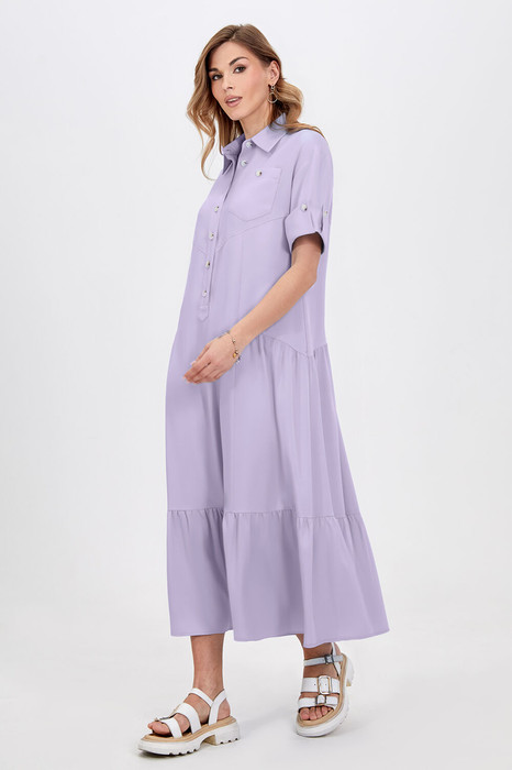 Это платье-рубашка с отложным воротником и короткими рукава с отделочными фигурными манжетами идеально впишется в городские образы в стиле кэжуал. Легкая вискозная ткань приятна для кожи и красиво струится во время носки. Застёжка на пуговицы позволяет регулировать глубину выреза. Модель свободного кроя дополнена оборками, отделочным карманом по переду и функциональными карманами в боковых швах. Длина позволяет носить платье как на каблуке, так и на плоском ходу.