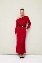 Элегантное и стильное платье с летящей плиссированной юбкой и рукавами-крылышками с кристаллами создает нежный и романтичный образ для торжественных случаев. Модель с округлой формой горловины со сборкой и каплевидной застёжкой на навесную петлю и ювелирную пуговицу по переду. Платье со скрытой резинкой на талии выполнили из приятной немнущейся ткани. Линия талии дополнительно красиво подчёркивается с помощью пояса-ремня с пряжкой в тон.